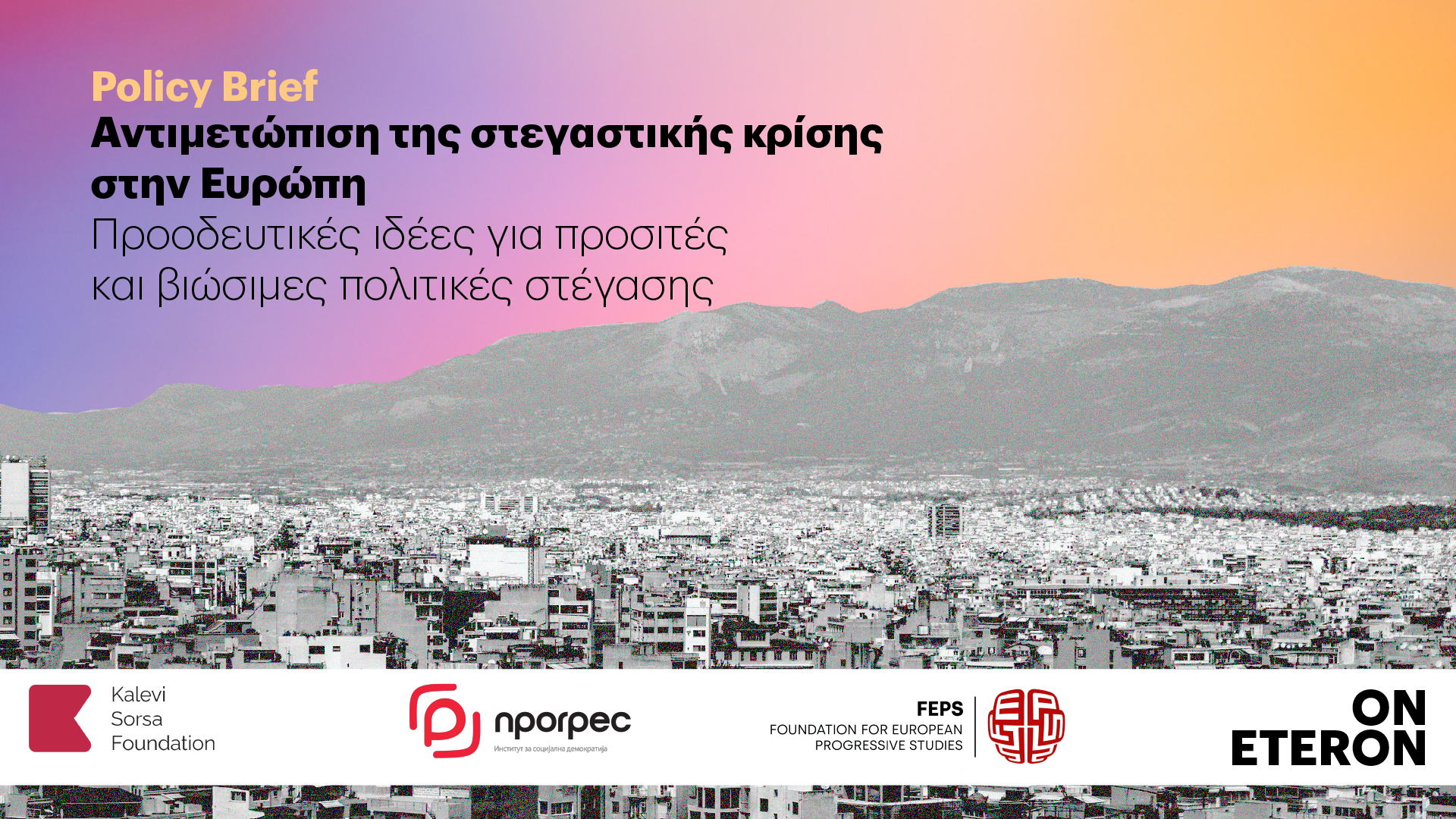 Το ETERON – Ινστιτούτο για την Έρευνα και την Κοινωνική Αλλαγή, σε συνεργασία με το Foundation for European Progressive Studies (FEPS), το φινλανδικό ίδρυμα Kalevi Sorsa και το ινστιτούτο Progres από τη Βόρεια Μακεδονία, παρουσιάζουν τη νέα έκθεση πολιτικής με τίτλο «Αντιμετώπιση της στεγαστικής κρίσης στην Ευρώπη: Προοδευτικές ιδέες για προσιτές και βιώσιμες πολιτικές στέγασης».